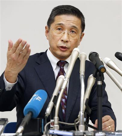 新車の無資格検査問題で記者会見する日産自動車の西川広人社長=2日午後、横浜市西区【拡大】