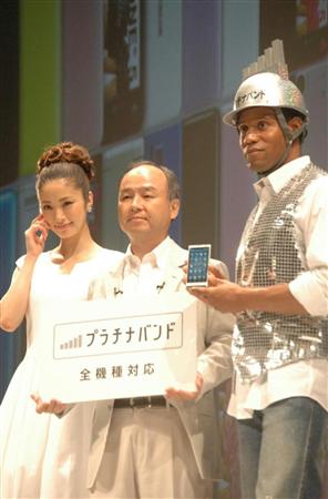 ソフトバンクは、障害物を避けてつながりやすい900メガヘルツの周波数帯の通信サービス「プラチナバンド」を7月25日に始める。今回発表のスマホ4機種と、従来型の携帯電話3機種のすべてが対応。孫正義社長は発表会で、「ソフトバンクの電波に対するイメージをよくしていきたい」と力を込めた。
