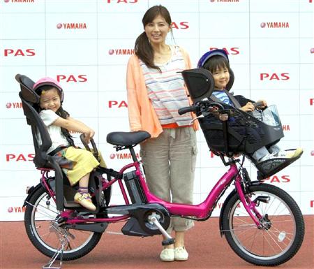 ヤマハ発動機が先月発売した幼児2人乗り対応の電動アシスト自転車「パスキッスミニ」は重心が低くて安定感があるのが特長だ【拡大】
