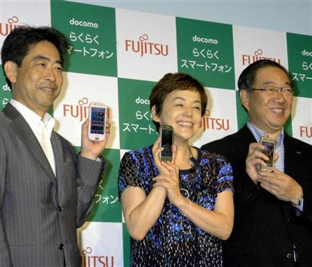 NTTドコモは20日、中高年をターゲットに富士通が新開発した「らくらくスマートフォン(高機能携帯電話)」の予約受付を始めた。従来型携帯の「らくらくホン」で培った技術に磨きをかけ、初心者でも安心して“スマホデビュー”できる端末として売り込む。京セラやシャープなども、独自の技術や画面デザインで使いやすさをアピールし、シェア拡大に向けて初心者層の取り込みを図っている。