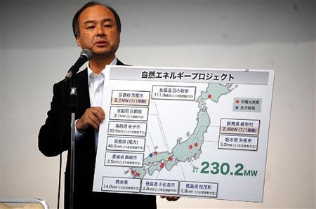 7月1日。京都市内でソフトバンクの子会社によるメガソーラー(大規模太陽光発電所)の運転開始セレモニーが開かれ、孫社長は報道陣の前で、日本列島の地図を見せながら自信たっぷりにこう述べた。