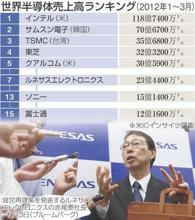 日系半導体メーカーの凋落が著しい。NECと日立製作所が設立し、その後に三菱電機が合流したエルピーダメモリは会社更生手続き中。同じ3社が母体のルネサスエレクトロニクスも経営不振にあえぐ。