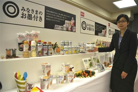 食料品PBの名称は「みなさまのお墨付き」。消費者調査で味や価格、量などで70%以上の消費者から「良い」と評価された商品だけを販売するコンセプトで、カップ麺や調味料、冷凍食品、酒類、菓子、飲料など101点を取りそろえた。