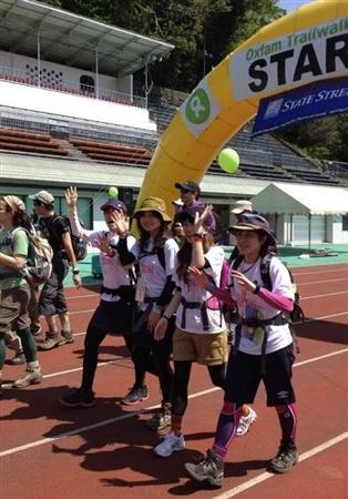 ボランティアウォークイベントに参加した今本晴香さん(右端、デサント提供)【拡大】