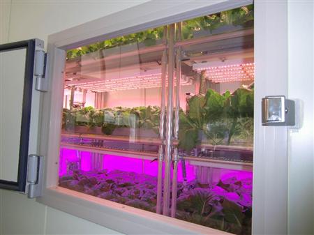 千葉大学で行われている植物工場実証実験の様子。大林組は低コスト植物工場実現に向けタッグを組む。【拡大】