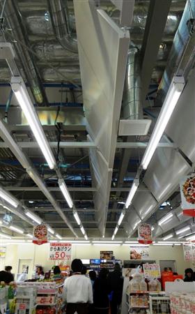 安定した地下水の熱を天井のルーバーで放射して室温を調節している=2012年12月7日、神奈川県海老名市【拡大】