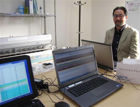 エコーネットライト対応機器同士の通信の検証について説明するHEMS認証支援センターの一色正男センター長=神奈川県厚木市【拡大】