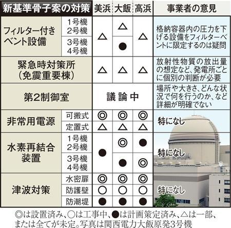 原子力規制委員会がまとめた、原子力発電所の過酷事故に対する新安全基準の骨子案に対し、電力会社の困惑が広がっている。基準の要件となる新たな設備は、詳細が固まっていないものがあるほか、用地や原発の規模など実態に即していないものも少なくないためだ。新基準の内容いかんで、大飯原発3、4号機(福井県おおい町)の再停止が取り沙汰される関西電力も対応に苦慮している。