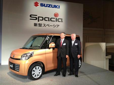 スズキの鈴木修会長兼社長は、新型軽自動車「スペーシア」の発表会見で、19年ぶりに3割を下回ったシェア挽回に並々ならぬ意欲をみせた。田村実副社長は、鈴木会長の発言の真意を「顧客数も着実に増えている。シェア回復は単に意地の部分」と解説するが、今回のスペーシアにシェア挽回の一役を担わせることは明白だ。