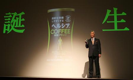 「ヘルシアコーヒー」を発表する沢田道隆・花王社長=27日、東京都港区のホテル【拡大】