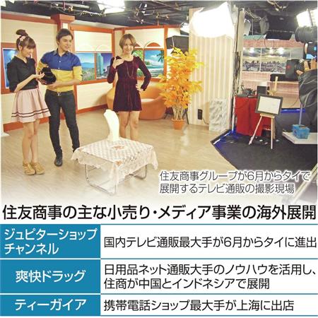 最近の住友商事の成長事業の成功例といえば、テレビ通販事業だろう。同社は今年6月、グループのテレビ通販最大手のジュピターショップチャンネルやタイ流通大手2社と組み、タイで衛星チャンネルを使ったテレビ通販に乗り出す。国内の成功事例を海外で展開し、新興国の旺盛な消費を取り込む狙いだ。