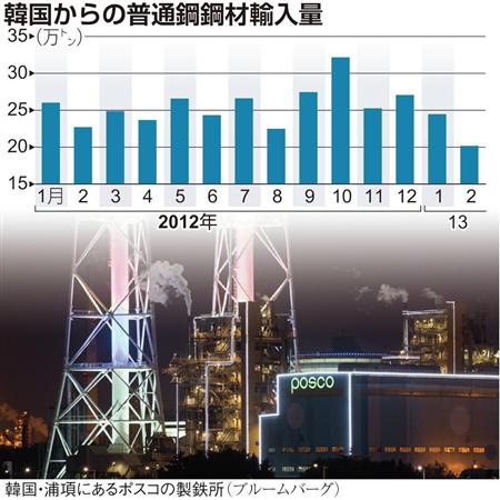 韓国からの普通鋼鋼材輸入量【拡大】