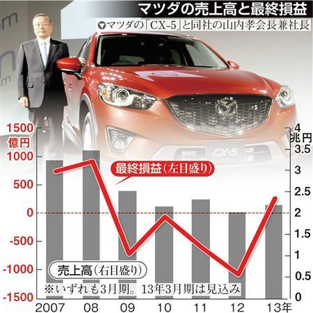 マツダが、2013年3月期に最終損益で5年ぶりの黒字転換を果たす。