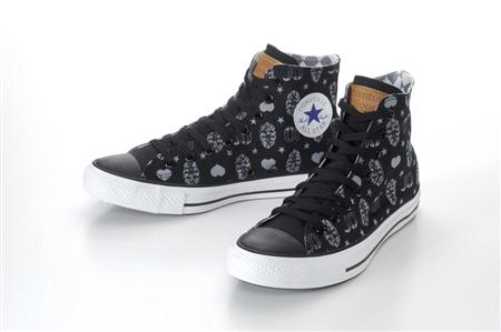 ALL STARのアイコン「星マーク」をグラデーションプリントし、同作品の主人公の体にある「星型のアザ」に見立てた。黒を基調に、作品に登場する「石仮面」をちりばめ、インソールや裏地にも「ジョジョ」の世界観にこだわったデザインに仕上げた。25.5センチから29.0センチのメンズサイズに加え、22.0センチから24.5センチのレディースサイズも用意した。