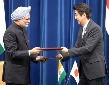 安倍晋三首相とインドのシン首相が、高速鉄道計画の共同調査や原子力協定交渉の再開で合意したことで、政府が成長戦略の一つと位置付ける鉄道や原発などのインフラ輸出に弾みが付く。