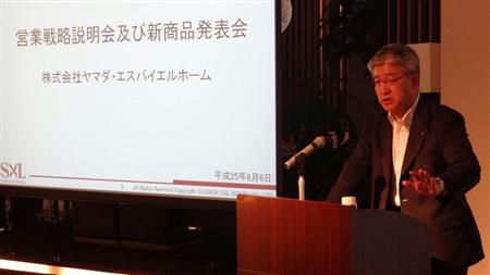 ヤマダ・エスバイエルホーム(旧エス・バイ・エル)の松田佳紀社長は6日、東京都内で会見し、親会社で家電量販店最大手のヤマダ電機とのシナジー(相乗)効果を出すことで「1000億円以上の売上高がある住宅メーカーに成長していく」と意気込みを語った。具体的な目標として、2015年度(16年2月期)時点で、売上高を12年度(売上高398億円)に比べ2.5倍となる1000億円以上を目指すとした。