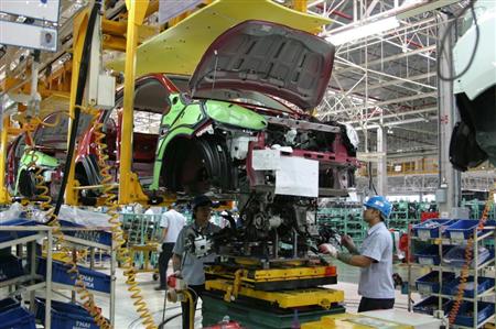 三菱自動車タイ工場内の「ミラージュ」の生産ライン(同社提供)【拡大】