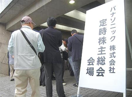 大阪市内で26日に開催されたパナソニックの株主総会。株主からは2期連続となる7000億円超の巨額赤字に批判が集中したが、津賀一宏社長が進める成長戦略への異議はほとんど聞かれなかった。