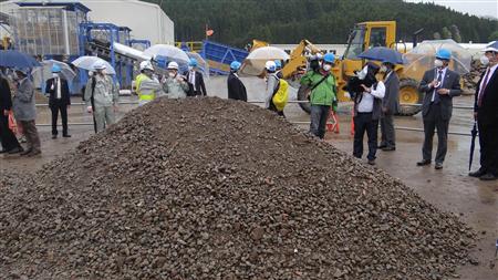陶器片やガラス、レンガといった不燃混合物は1日あたり30~40トン、可燃混合物の焼却処理で生じる焼却灰は40~50トン発生。さらに津波堆積物などの洗浄工程から回収される残渣類が30~40トン出ており、膨大な量の震災がれきが“無駄”になっている状況だった。