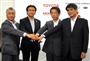 決算を発表する三菱自動車の野田浩常務執行役員(中央)ら=30日、東京都港区【拡大】