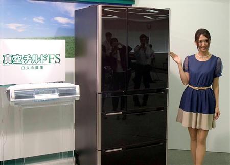 日立アプライアンスは27日、ワサビと同じ辛み成分で食品を新鮮に保存する機能を備えた大容量冷蔵庫「R-M6700D」など11機種を9月12日から順次発売すると発表した。内部のファンを2つにすることで省エネ性能も高めた。