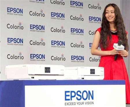 エプソンの新製品をPRするイメージキャラクターで女優の忽那汐里さん=3日、東京都文京区【拡大】