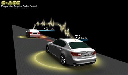 トヨタ自動車が開発した自動運転車システムは、先行車両と無線通信しながら追従走行する(同社提供)【拡大】