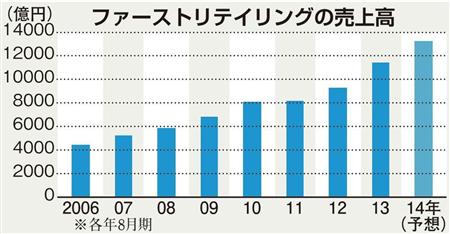 カジュアル衣料大手ユニクロを展開するファーストリテイリングが10日発表した2013年8月期連結決算は、売上高が前期比23.1%増の1兆1430億円となった。積極的なグローバル展開が寄与し、初めて1兆円を超えた。ただ、柱の国内事業は3期連続の営業減益だった。海外出店を加速することで「世界のファッションアパレル業界に旋風を巻き起こす」(柳井正会長兼社長)と意気込むが、そのためには国内の立て直しが急務だ。