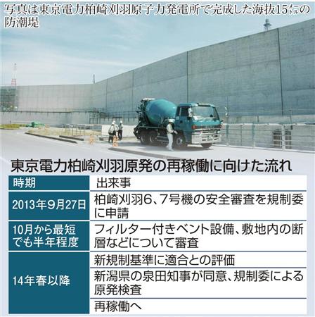 東京電力が、経営再建の大前提となる柏崎刈羽原子力発電所6、7号機(新潟県)の再稼働に向けた安全審査の申請にこぎ着けた。東電は来春以降の再稼働を目指し安全対策を急ぐが、福島第1原発の放射能汚染水漏れ問題が深刻化。原発の管理能力に対し、厳しい目が向けられている。汚染水問題、原子力規制委員会による審査、新潟県の同意という3つの壁が立ちはだかる中、正念場を迎えている。