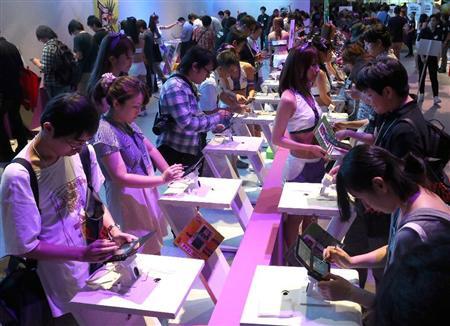 東京ゲームショウ2013。ガンホー・オンライン・エンターテイメントのブースに設けられた体験ブースには多くの人が集まった
