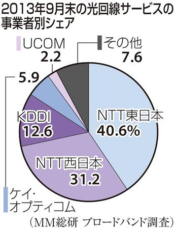 2013年9月末の光回線サービスの事業者別シェア【拡大】