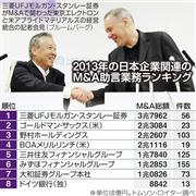 日本企業関連のM&A(合併・買収)助言業務の獲得競争が激しさを増している。2013年に日本が関わったM&A総額を基にした助言業務の実績ランキング(リーグテーブル)の首位は、国内証券最大手の野村ホールディングス(HD)を上回り、日米金融大手の合弁、三菱UFJモルガン・スタンレー証券が初めて獲得した。日本企業の国際化を進める戦略として、「時間を買う」M&Aのニーズは14年も高まるのは確実。巻き返しを期す野村と、外資、メガバンクとの戦いは、日本経済の再生にも寄与しそうだ。
