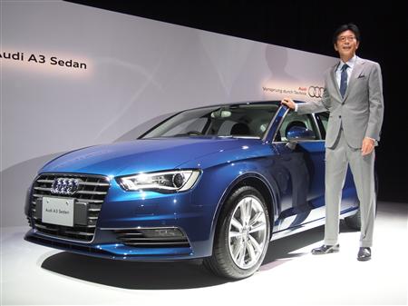 「A3セダン」の発売を発表するアウディジャパンの大喜多寛社長=14日午前、東京都渋谷区【拡大】