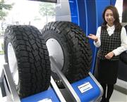 東洋ゴム工業が、北米で販売しているスポーツ用多目的車(SUV)やピックアップトラック向けタイヤを本社ビル(大阪市西区)1階に展示。来訪者の目を楽しませている。