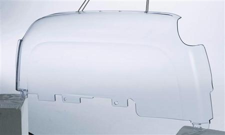 PC樹脂は二酸化炭素(CO2)の排出削減や車体軽量化による燃費改善などのため需要が伸長。ガラスと比べて重さは半分ながら200倍以上の耐衝撃性を持つ素材の特長を生かし、後部ドアなどの大型部品としても活用されている。
