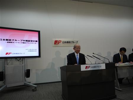 西室泰三社長は都内で会見し、「郵便局を通じたトータル生活サポート企業となり、安定的に成長していく責務を果たす」と述べた。