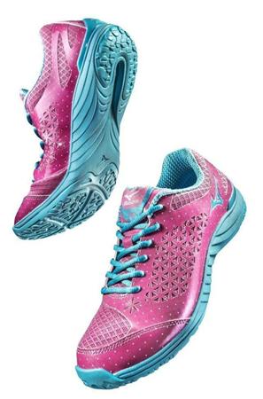 トレーニングジムなどで短時間に効率良く運動したい女性向けのフィットネスシューズ。カラーは「ピンク×サックス」、「ライトグリーン×パープル」「ブラック×イエロー」の3種類。価格は8500円(税別)。販売中。