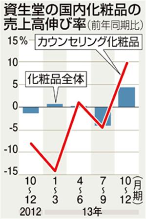 国内向け化粧品を牽引(けんいん)したのはユーザーの好みや肌に合わせて美容部員が対面で販売するカウンセリング化粧品。このうち中価格帯(2000~5000円)の店頭売上高は13年10~12月期に「エリクシール」が前年同期比26%増、「マキアージュ」が7%増となった。5月には「ベネフィーク」ブランドのスキンケア製品を投入し攻勢を強める。
