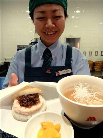 モスフードサービスの桜田厚社長は同日の会見で、午前7時開店の狙いをそう力説した。一部で先行実施していた早朝営業を、4月から全体の8割に当たる1140店舗に拡大。ライスバーガーと豚汁に漬物を組み合わせた新メニュー「朝御膳『鮭』」(480円)など9品を販売する。