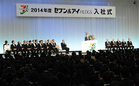 流通大手のセブン&アイ・ホールディングスは13日、東京都内のホテルで合同入社式を開催し、イトーヨーカ堂やそごう・西武などグループ14社の新入社員1219人が社会人生活をスタートさせた。同社は早く接客に慣れてもらうため例年、他の企業より一足早く入社式を行っている。