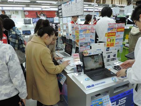 ウィンドウズXPのサポート終了で、買い替えでにぎわう家電量販店のパソコン売り場=東京都豊島区のビックカメラ池袋本店パソコン館【拡大】