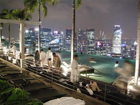 マリーナベイ・サンズは米カジノリゾート運営会社ラスベガス・サンズ(ネバダ州)が2010年に開業。約5千億円を投じた施設は、地上57階建てのビル3棟の最上階に、大型船を模した屋外プールを乗せた構造をしている。延べ床面積は15・5ヘクタール。高級ブランド店が並ぶショッピングモールと国際会議場、約2600室のホテルを併設し、収入の7割以上をカジノが支える。