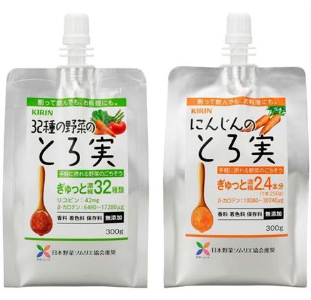 □パウチ容器入り「キリン 32種の野菜のとろ実/同 にんじんのとろ実」