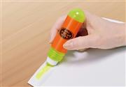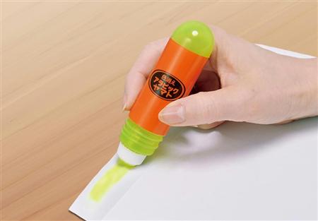 塗った場所が蛍光イエローになり、ひと目でわかる液体のり。色はゆるやかに消える。容量は20ミリリットル(183円)と40ミリリットル(248円)の2種を用意。販売中。