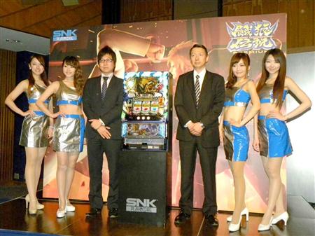 SNKプレイモア(大阪府吹田市)は4月11日、東京都千代田区のホテルニューオータニでパチスロ新機種「餓狼伝説PREMIUM」のプレス発表会を開催した。新機種は、同社を代表する人気格闘ゲームがモチーフ。