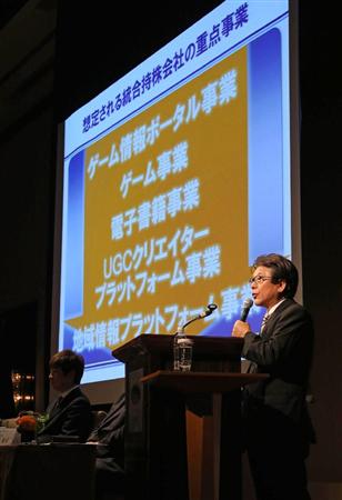 統合発表会見で川上会長は、「KADOKAWAは書籍という(情報提供の)プラットフォームも持っており、両社ともにコンテンツとプラットフォームを持つ。この企業同士の統合で、強みを生かす」と語った。
