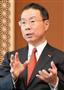 会見する三菱UFJフィナンシャル・グループの平野信行社長=14日、日銀本店(万福博之撮影)【拡大】