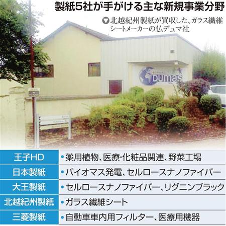 中核事業とは、紙の他に電気自動車に搭載されるコンデンサー用高機能性フィルムやスマートフォン(高機能携帯電話)に使われるタッチパネル用部材などで、生産能力を増強し、新製品開発も強力に推進。レーヨン向けに使われる溶解パルプの生産設備が5月に稼働し、今後は食品添加剤や医療品材料といった特殊用途に向け、高付加価値化を進めた製品を2015年度にも投入する。