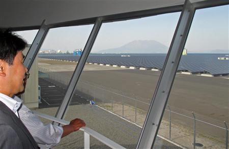 メガソーラーは約127万平方メートルの敷地に、京セラ製太陽電池パネル約29万枚を敷き詰め、273億円を投じて建設。昨年11月に稼働を始めた。出力は7万キロワットで、年間発電量は一般家庭約2万2千世帯分に相当する。丸紅などが大分市に建設したメガソーラーが今年4月に稼働するまでは国内最大出力だった。