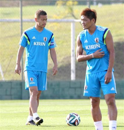ベースキャンプ「SPASPORTRESORT」での初練習に臨む本田圭佑。手前は大久保嘉人=9日、ブラジル・サンパウロ州イトゥ【拡大】
